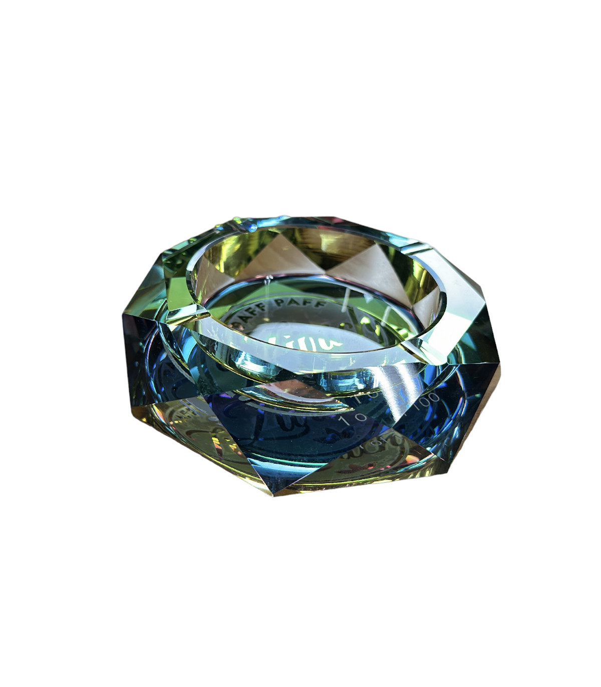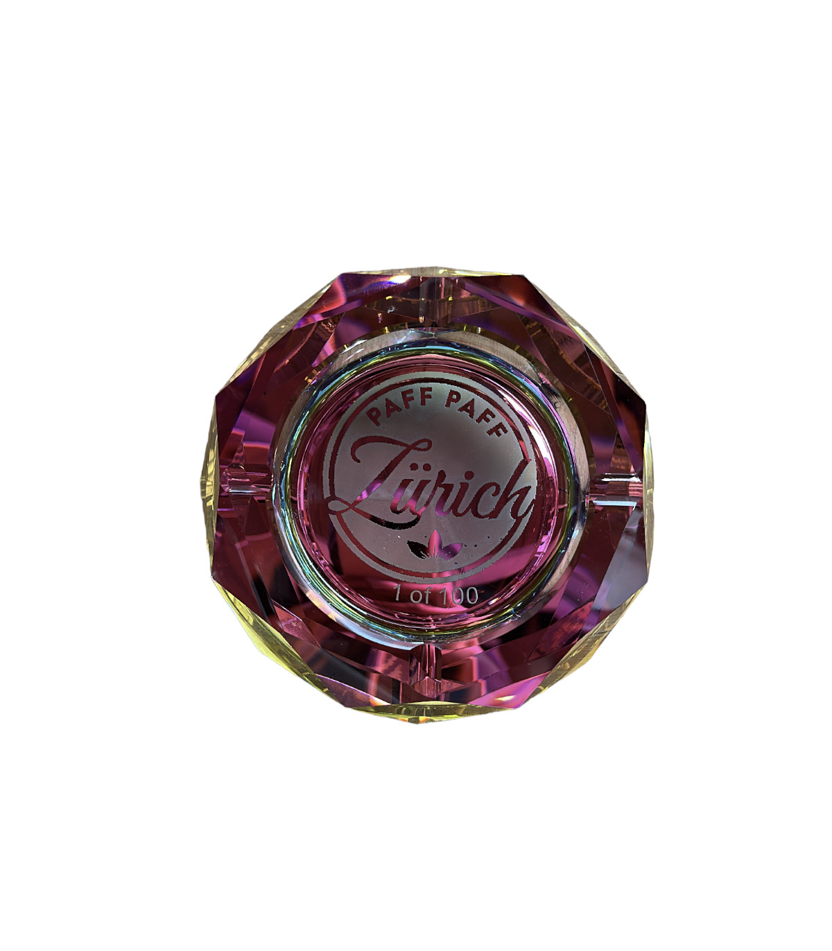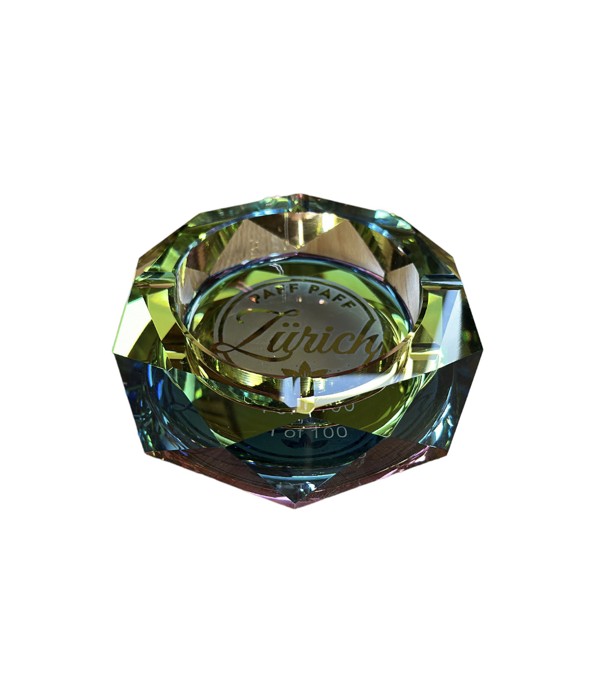 Unser PaffPaff Zürich Kristallaschenbecher mit Prismenfarben und Diamant-Facetten-Schliff.