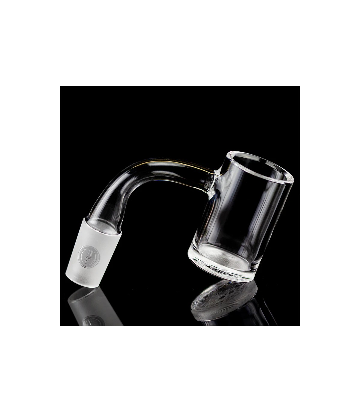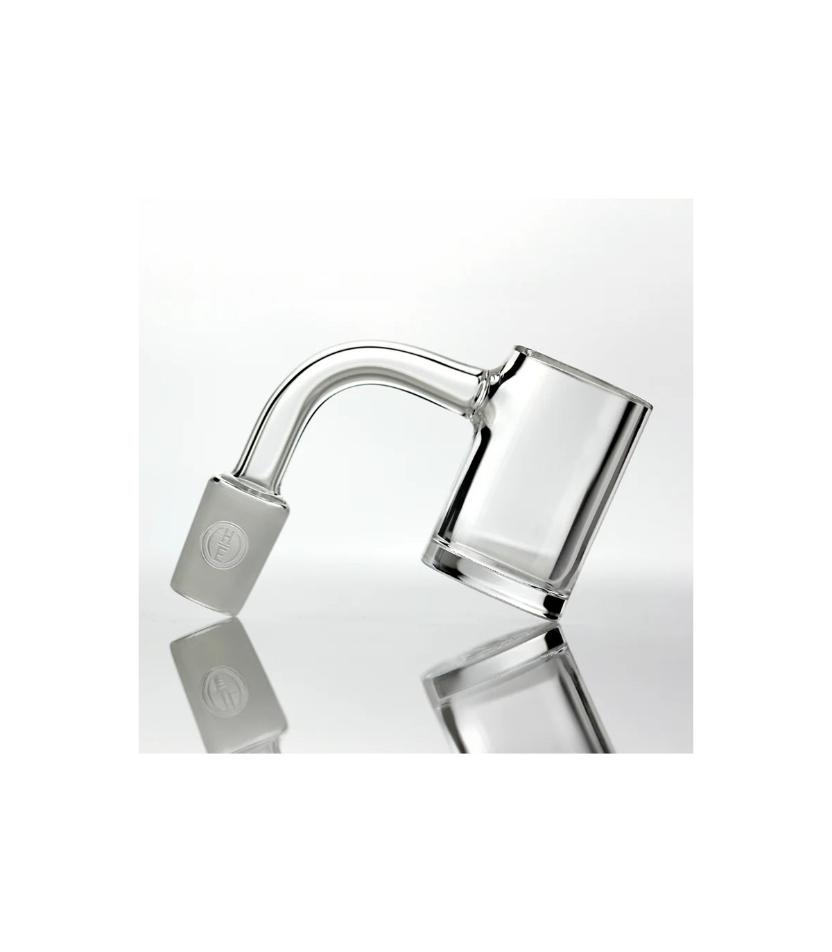 The Gavel SE features our new surface enhanced quartz bottom. The surface is engineered to greatly improve the efficiency of the oil evaporation process by increasing surface free energy, reducing liquid surface tension, promoting nucleate boiling, and rapidly increasing evaporation rates. The improvements have been designed to be both extremely durable and easy to clean. While we recommend isopropyl alcohol for cleaning all nails, maintenance can be done with dry cotton swabs. This is different from the opaque surface, which requires maintenance with isopropyl alcohol to avoid black carbon stains. The bottom is engraved and this engraving will be visible through the top of the bucket when the surface is wet. When the bottom is dry, the engraving is again hidden by the opacity of refracted light.